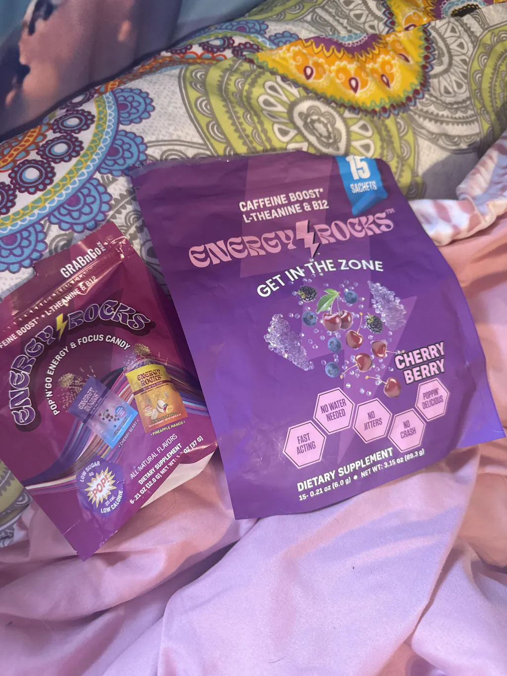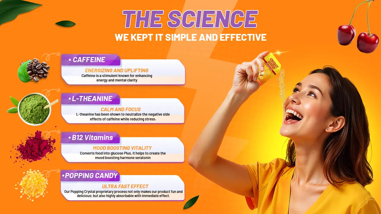 These popping candy crystals are delicious and bring back that fun pop rocks sensation! The pineapple mango flavor is great, and they're super easy to take—no mixing required. I like the quick energy boost from the caffeine and B12, perfect for staying focused during the day.