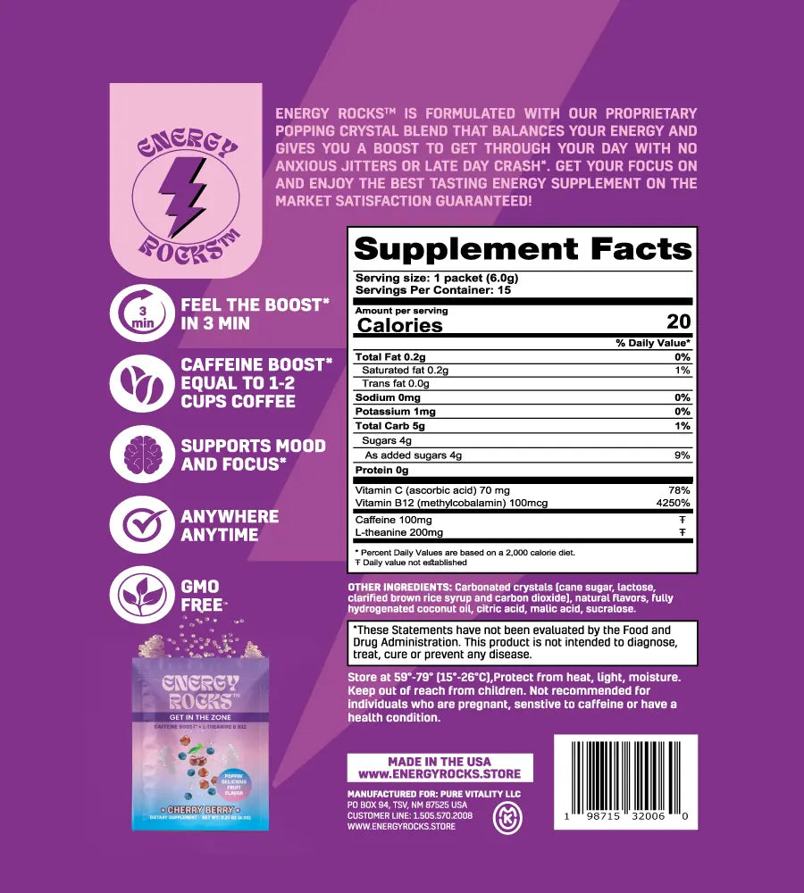 These energy rocks are a fun and convenient way to get a caffeine boost while on the go. They taste amazing—very fruity, tangy, and sweet! I noticed a nice energy boost after having some.
