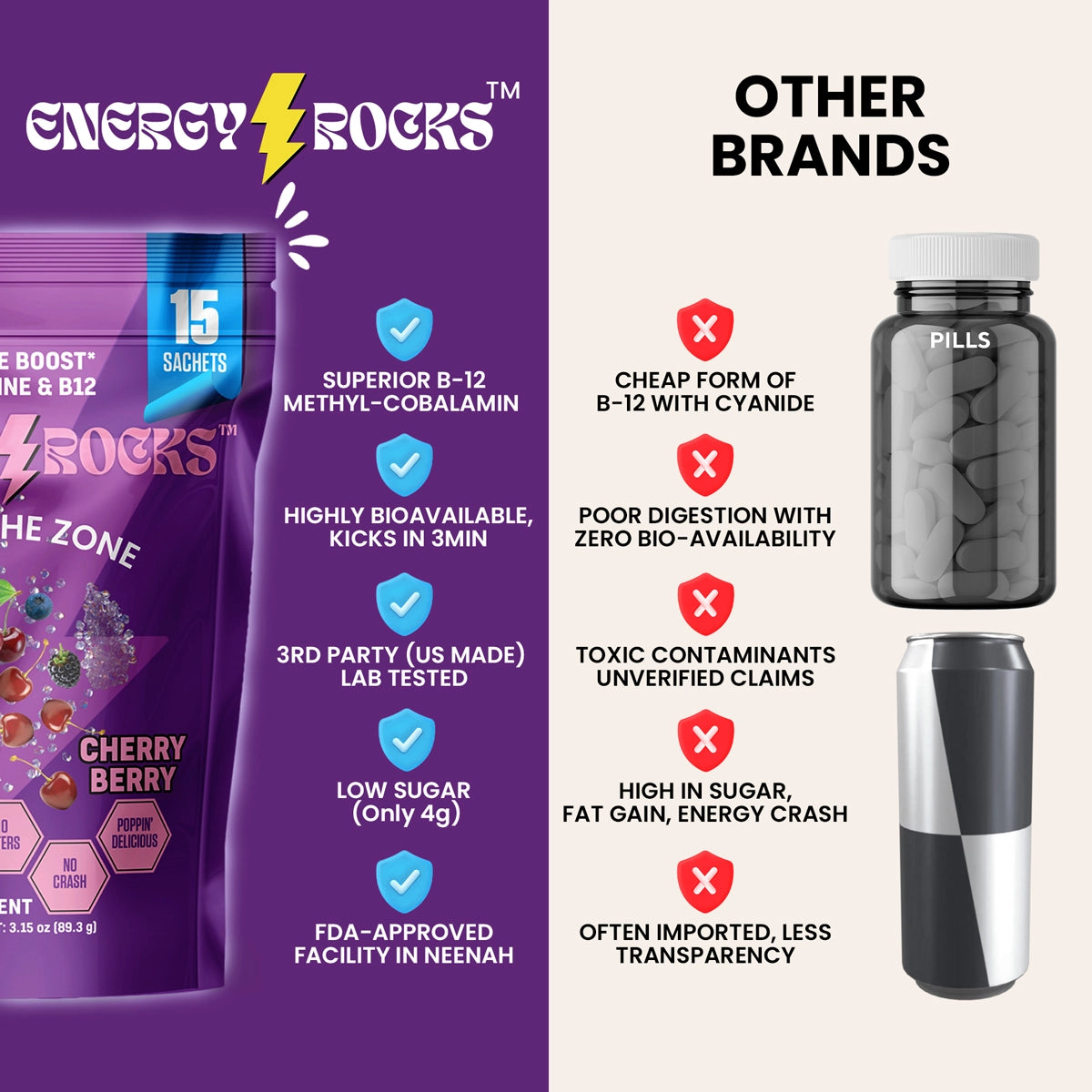 These energy rocks are a fun and convenient way to get a caffeine boost while on the go. They taste amazing—very fruity, tangy, and sweet! I noticed a nice energy boost after having some.